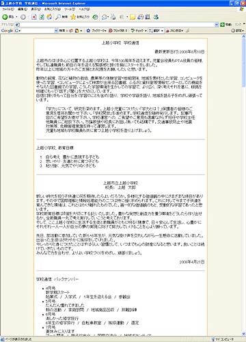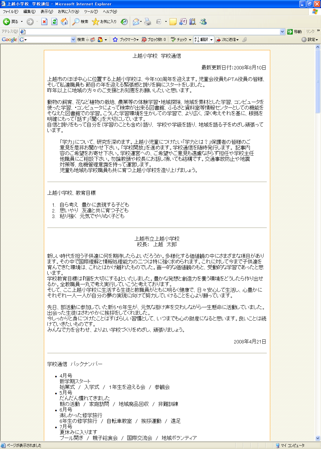 学校通信 バックナンバーの上の行