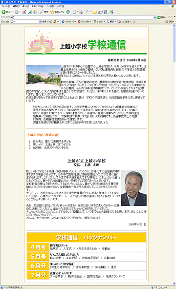 文字で「4月号」「5月号」‥となっている部分を画像(ファイル名は[4.gif][5.gif]‥となっています)に変更し、各月のページへのリンクを貼りなおします。そのために、セル内の「○月号」テキストは削除し、そのセルに画像[4.gif][5.gif]・・・を配置していきます。 |