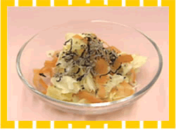 (キャベツは手でちぎってもよい。にんじんはピーラーで剥いてリボン状にしてもよい)